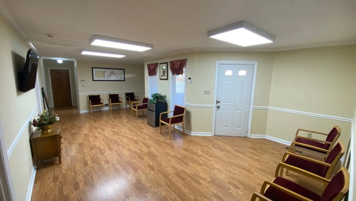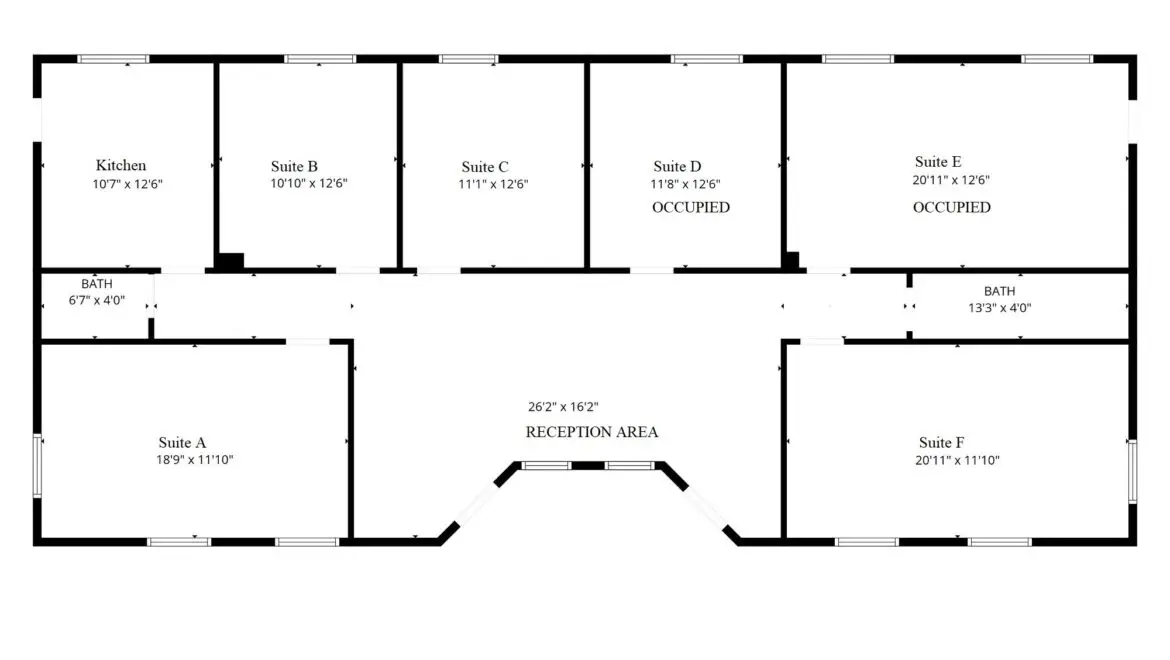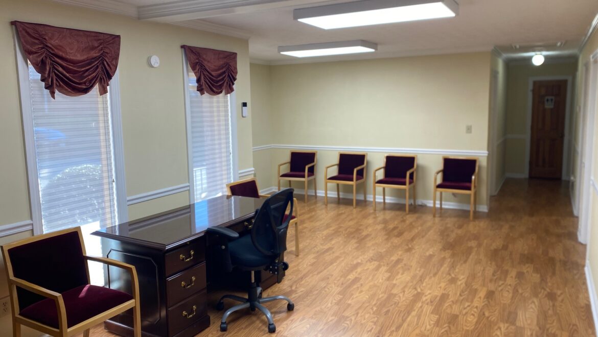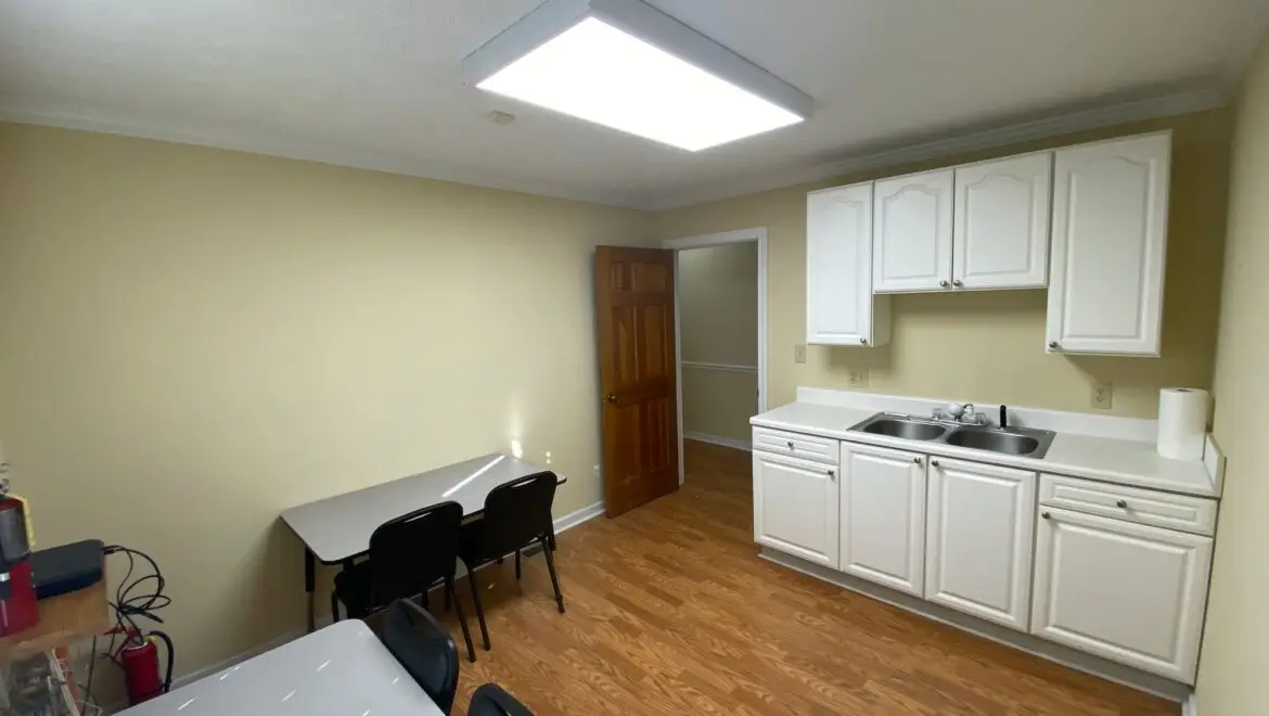 * Large reception area, kitchen, and break room